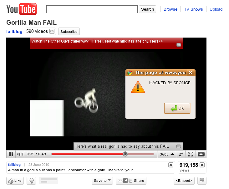 It looks like someone calling themselves "SPONGE" (among others) on this page has hacked the comments on YouTube.